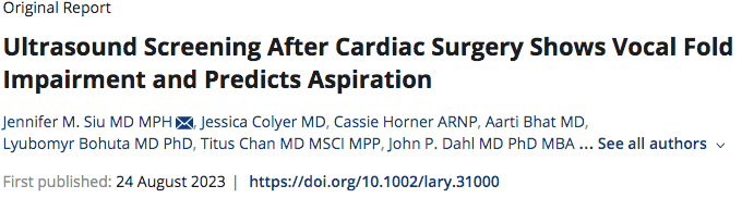The paper presented below suggests the utilization of laryngeal ultrasound (LUS) as a screening tool for detecting Vocal Fold Motion Impairment (VFMI). LUS has demonstrated a high accuracy in detecting VFMI and holds the potential to predict post-operative aspiration.