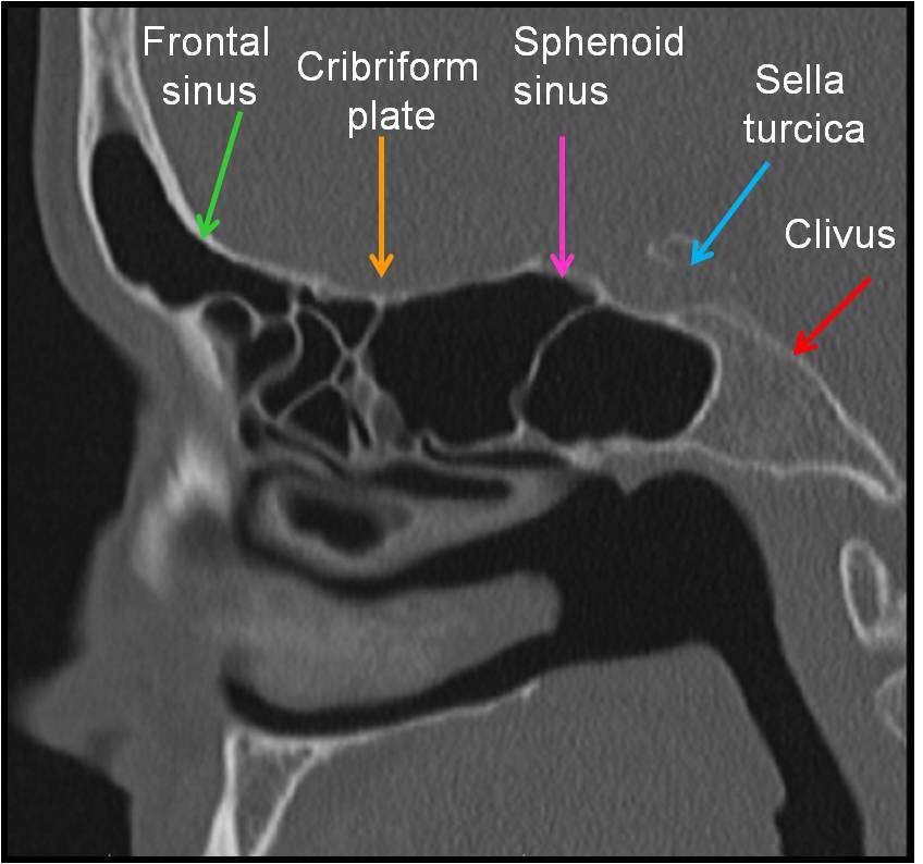 S – Skull base – dehiscence, slope (examine sagittal plane of CT scan)