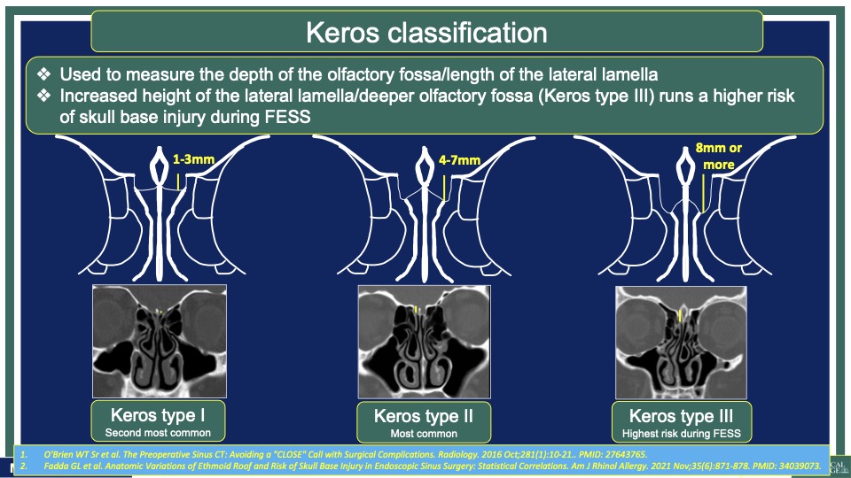 C – Cribiform plate (keros classification) – to assess the depth of olfactory fossa, length of lateral lamella, symmetry, slope or any dehiscence.