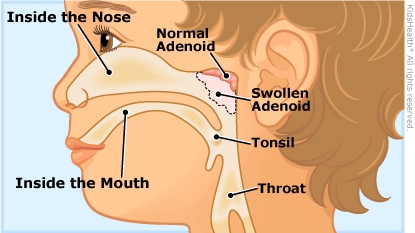 The adenoids are small masses of tissue located at the back of the throat, near the tonsils. They are part of the lymphatic system and play a role in helping the body fight infections by trapping harmful bacteria and viruses that are breathed in or swallowed. Adenoids are most prominent in children and tend to shrink as a person gets older. Sometimes, if the adenoids become enlarged and cause health problems like recurrent infections or breathing difficulties, a medical procedure called adenoidectomy may be recommended to remove them.