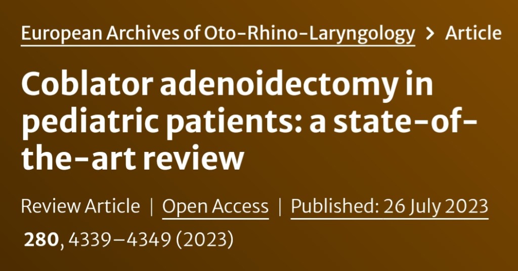 Today, I’d like to discuss a paper on coblator adenoidectomy, a commonly performed procedure at Hospital Tunku Azizah. I genuinely believe it’s a highly effective tool for removing large adenoids in children. Moreover, the coblator device is both safe and user-friendly.
