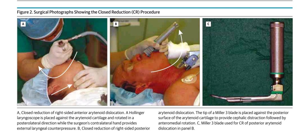 This could be attributed to either unilateral vocal cord palsy or arytenoid subluxation, considering the patient’s history of intubation and prior endolaryngeal surgery. I came across an intriguing article (here) on arytenoid reduction procedures. I encourage you to read the complete article. The question at hand is whether this procedure can be considered for an infant?