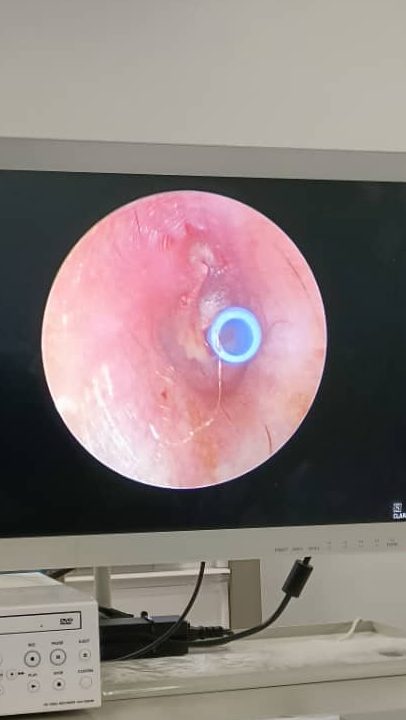a) Myringotomy and Tympanostomy Tube Placement: Pemotongan kecil dibuat pada gegendang telinga untuk mengeluarkan cecair dan menyamakan tekanan udara antara telinga luar dan tengah, kemudian tiub kecil dimasukkan sebagai pengganti tiub eustachian untuk sementara waktu, sehingga tiub eustachian sebenar mula berfungsi semula selepas beberapa bulan.