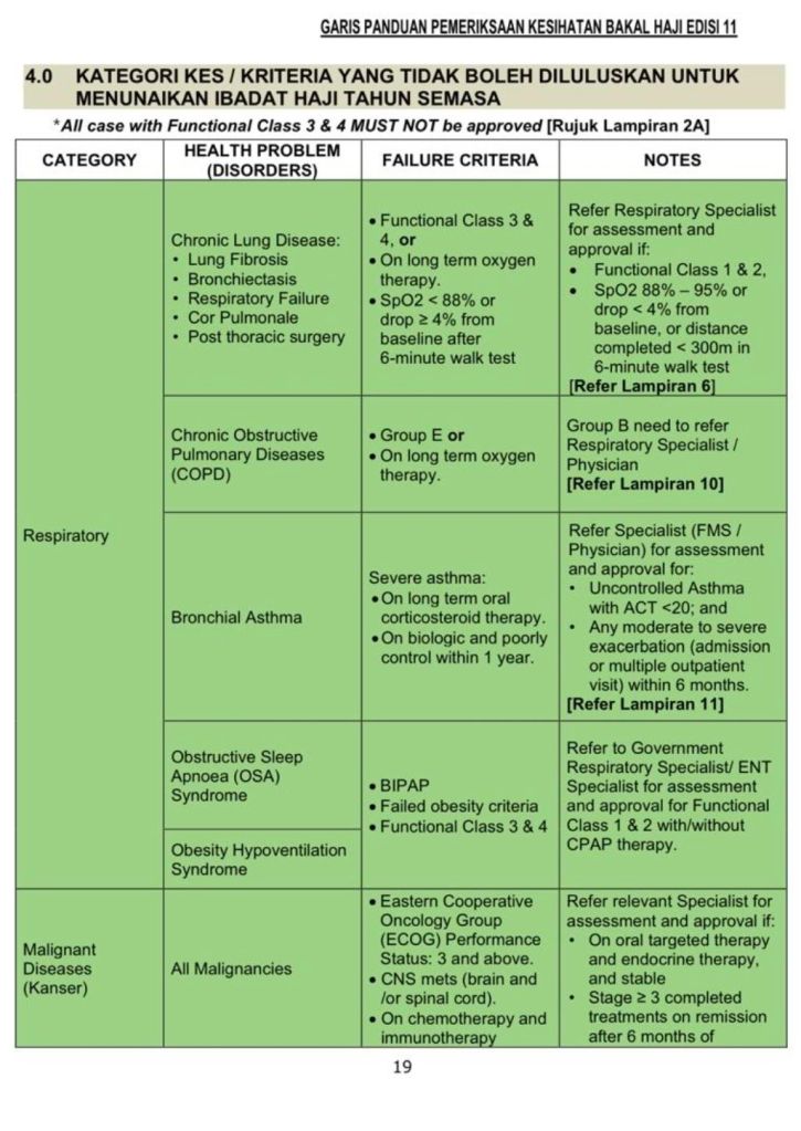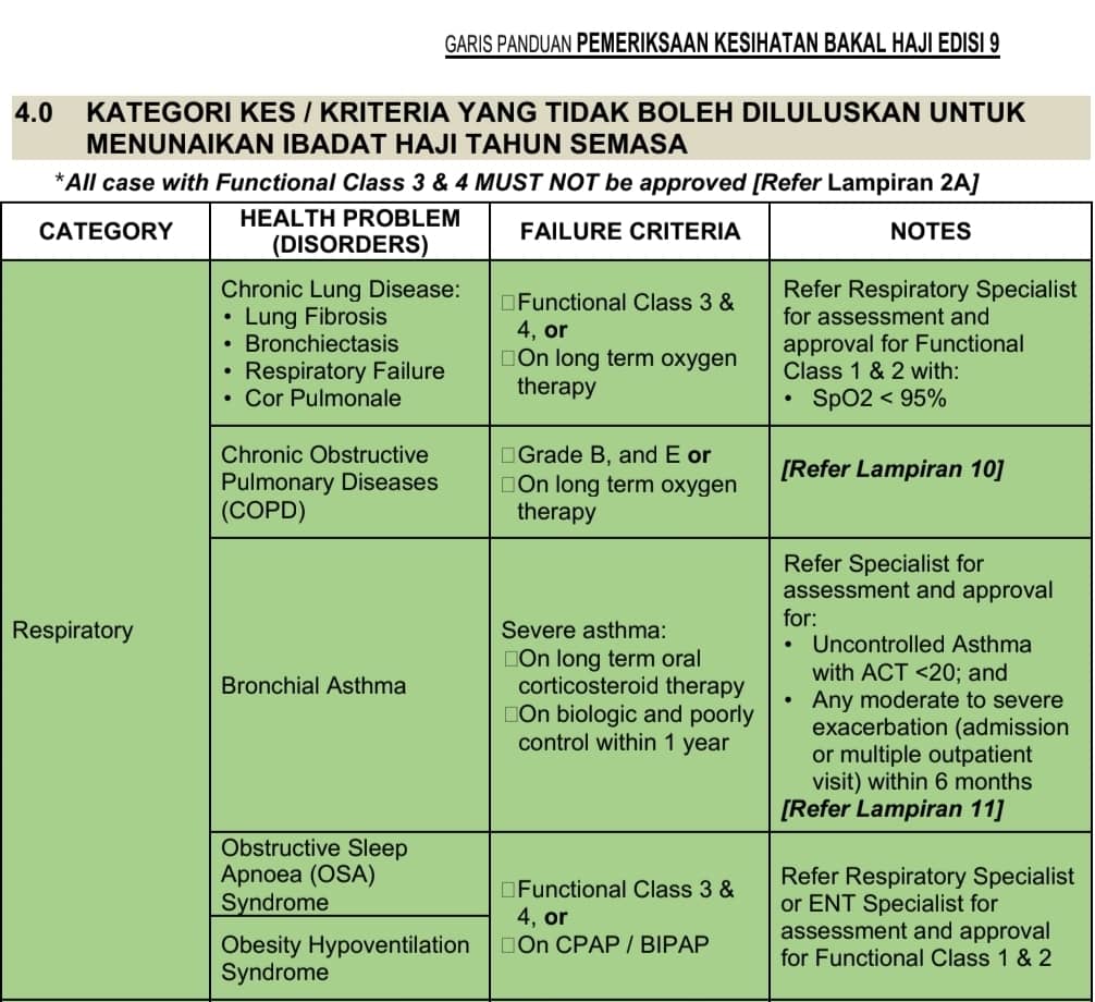 *Dengan update ini, pesakit OSA yang telah pakai mesin CPAP atau pesakit yang mendapat faedah dengan penggunaan mesin CPAP (bacaan AHI turun ke peringkat normal atau mild OSA semasa CPAP Trial), insyallah akan diluluskan untuk pergi haji.