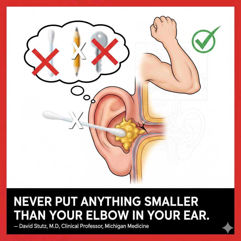 “The guidelines do not advise using Q-tips, pencils, keys or anything smaller than your elbow, as the oft-used saying goes, in your ear. The main danger of putting things inside your ear is you can’t see what you’re doing, and could potentially cause significant harm.”