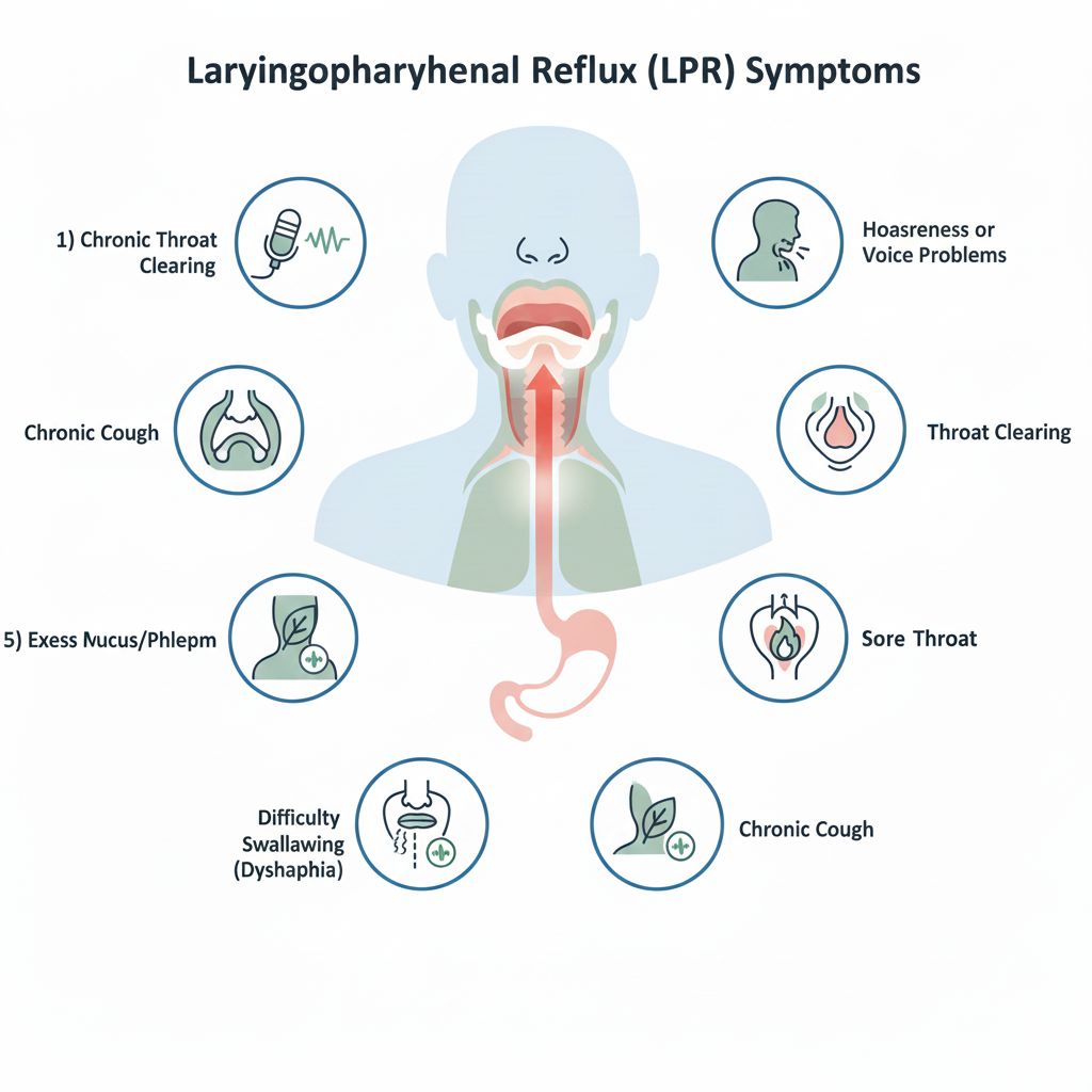 Because LPR often lacks the chest pain associated with GERD (Gastroesophageal Reflux Disease), the symptoms are usually concentrated in the throat and voice area. The most common signs are: