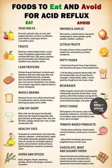 – Avoid Trigger Foods: Limit or eliminate highly acidic foods (citrus, tomatoes), caffeine, chocolate, spicy foods, mint, and high-fat meals.