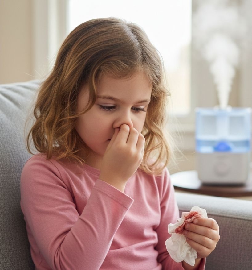 2) Dry Nasal Mucosa: Low humidity, often from heated indoor air, causes the delicate nasal lining to dry out and crack, making the underlying blood vessels more vulnerable to rupture.