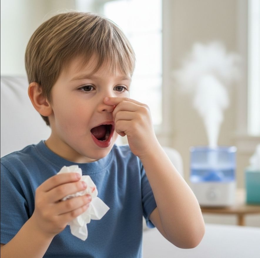 2) Humidification: Using a cool-mist humidifier, especially in the child’s bedroom during dry seasons or low-humidity conditions.