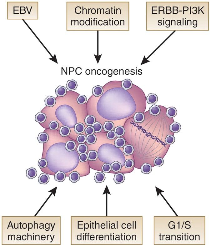 What makes NPC so common in certain communities? The truth is it’s a perfect storm of causes – a mixture of ancient genes, viral hijackers, and environmental sparks. First and foremost, Epstein-Barr virus (EBV) is almost always involved. EBV, the same virus that causes mono, lurks in the tumor cells of virtually all NPC cases in Asia. In endemic regions, the virus acts like a hidden accomplice – present from the beginning and fueling tumor growth. You can think of EBV as a seed or catalyst that, given the right conditions, helps transform the cells lining your nasopharynx into cancer.