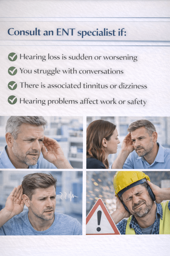 Hearing loss should never be dismissed without proper evaluation. From an ENT perspective, distinguishing between conductive and sensorineural causes is essential. Timely diagnosis allows appropriate treatment, hearing preservation, and rehabilitation, preventing unnecessary long-term disability.